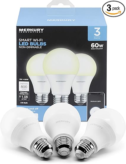 Merkury Innovations A19 Smart White Led Bulb 60w Non Dimmable 3 Pack Amazon Com